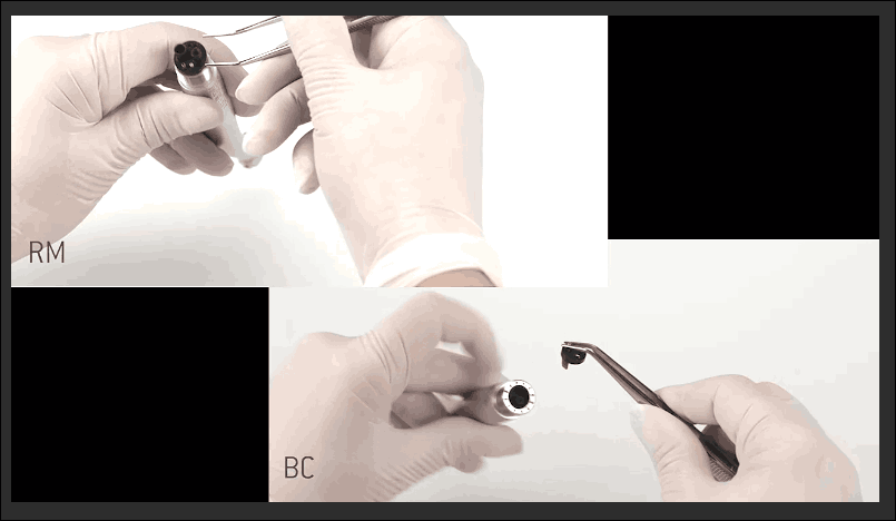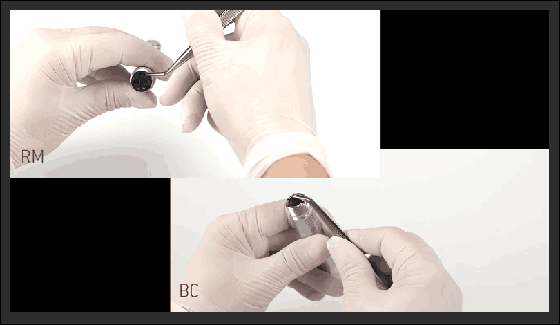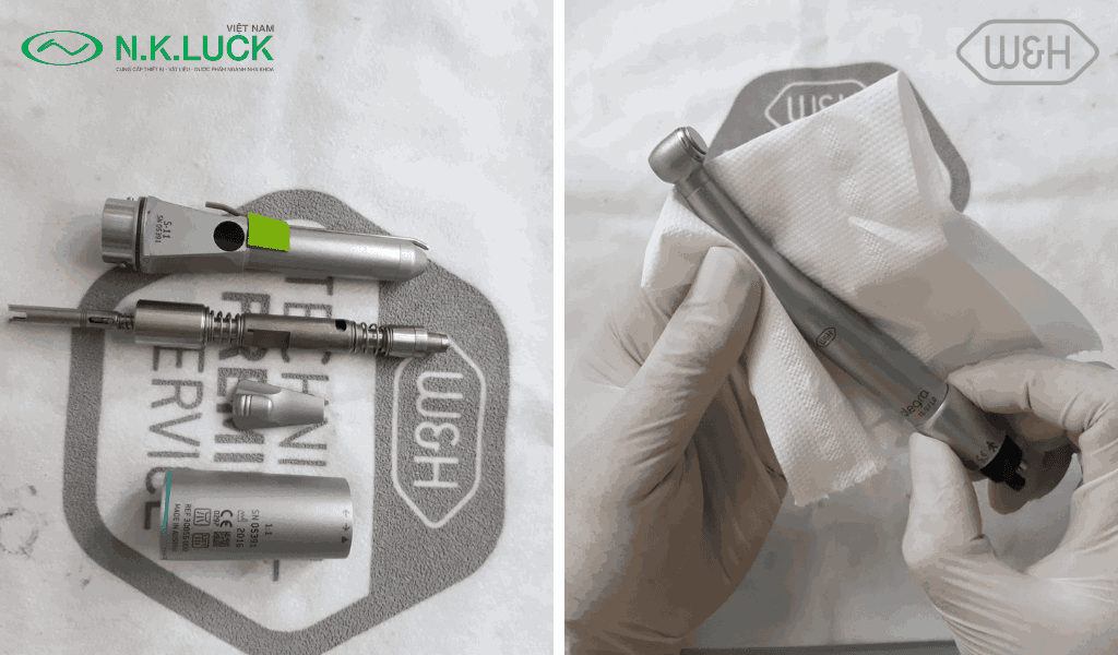 • Sử dụng khăn khử khuẩn lau khô nước trên dụng cụ, sau đó lắp ráp các bộ phận rời rạc của mũi khoan lại với nhau.
