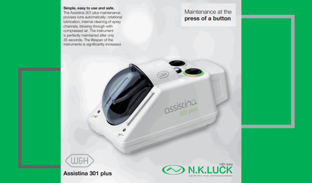 Máy móc: Sử dụng các máy móc, thiết bị vệ sinh, ví dụ như máy Assistina 301 plus hoặc Assistina 3×3, 3×2 để làm sạch (trong, ngoài) tay khoan mà không cần tháo rời từng bộ phận.