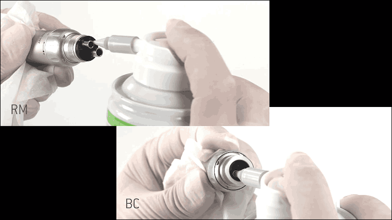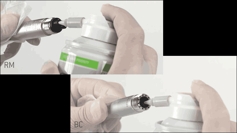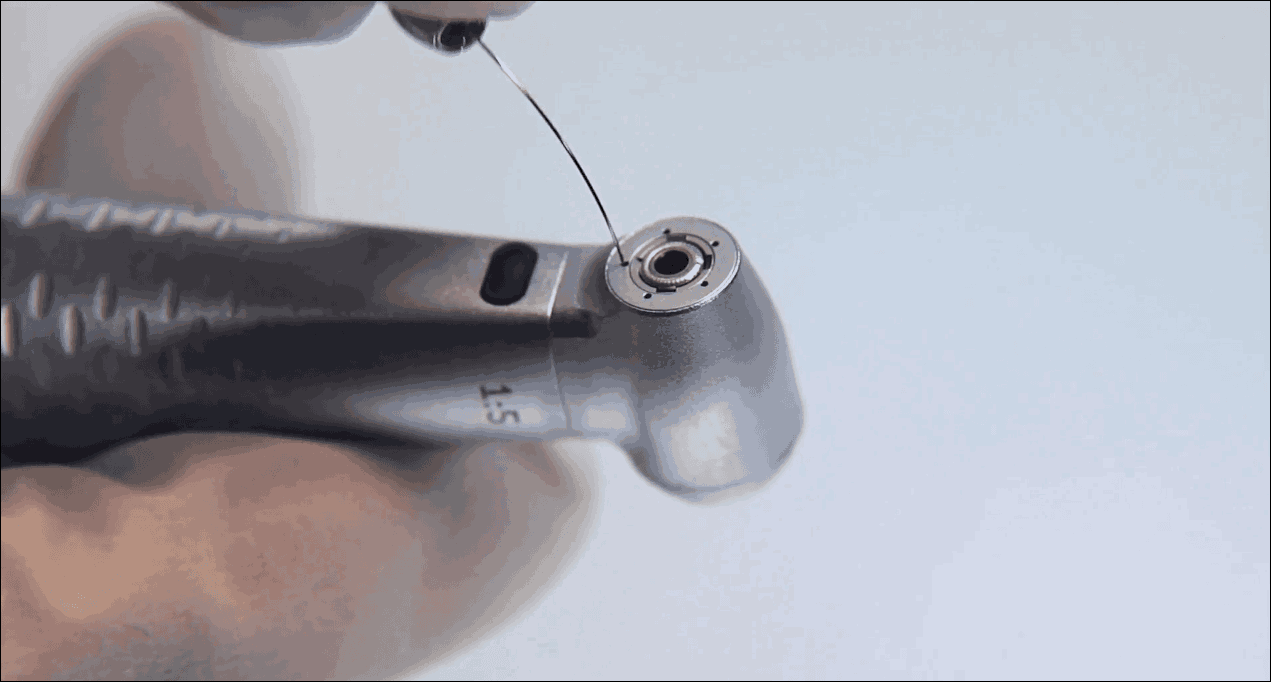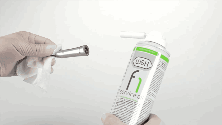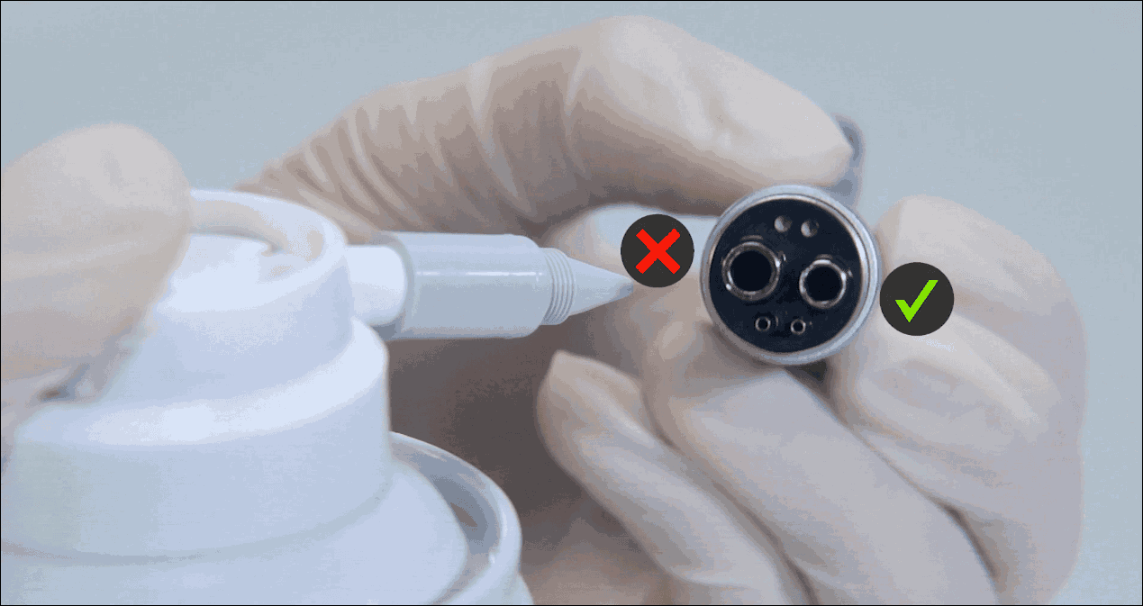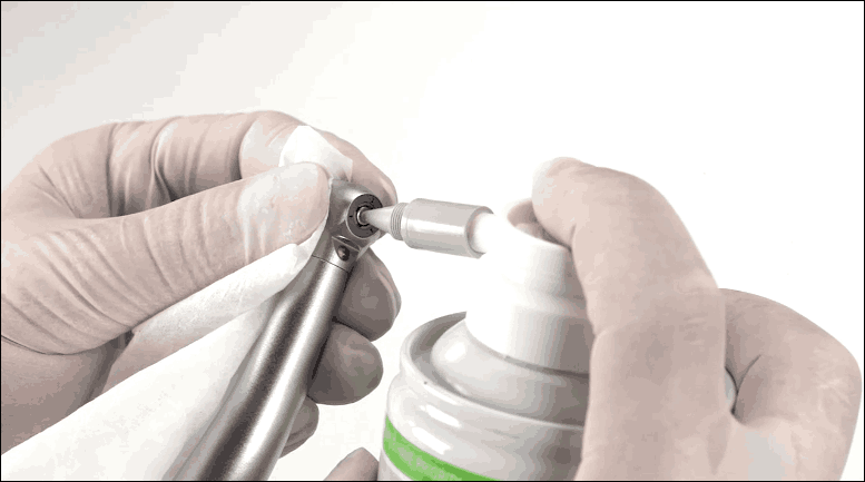Lưu ý: Khi tiến hành bôi trơn cho tay khoan, Bác Sĩ hãy ấn nút cho đến khi dầu chảy ra khỏi đầu tay khoan để đảm bảo rằng chất bôi trơn đã thâm nhập vào vòng bi. Sau đó, tiến hành lắp ráp rồi chạy thử tay khoan trong khoảng 30s để dầu phân phối đều qua các ổ trục và đẩy hết dầu thừa để tránh đông tụ trong quá trình hấp tiệt trùng. Không sử dụng đầu phun nước trên tay khoan Nha Khoa và không chạy đồng tâm vì điều này có thể làm hỏng tuabin.