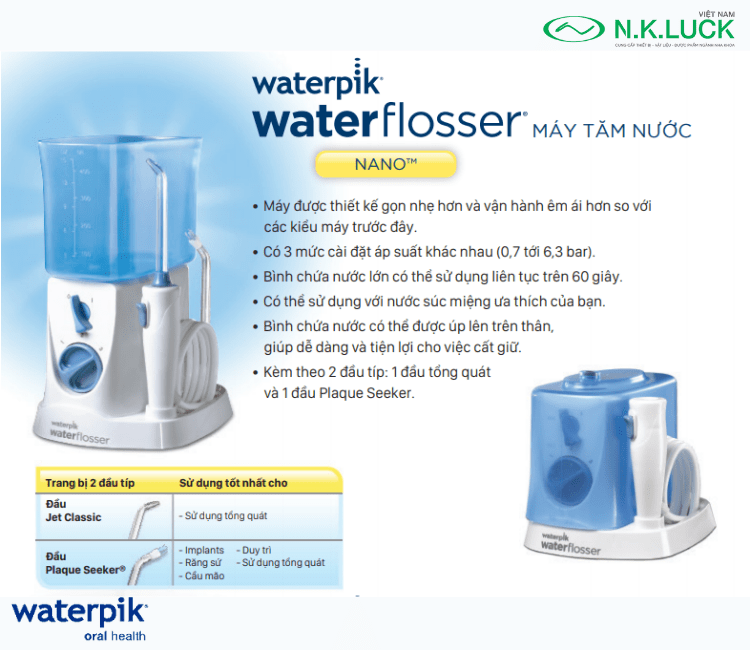 Tuy nhiên, đối với những khách hàng lần đầu niềng răng hoặc đang có nhu cầu chăm sóc răng miệng chuyên sâu thì việc tìm hiểu thông tin về sản phẩm này là điều vô cùng cần thiết. Hiểu được điều đó, N.K.Luck – một trong những nhà phân phối thiết bị Nha Khoa hàng đầu tại Việt Nam, với kinh nghiệm hơn 20 năm trong ngành sẽ giúp bạn có những thông tin về máy tăm nước WaterPik trong 8 câu hỏi thường gặp nhất dưới đây.
