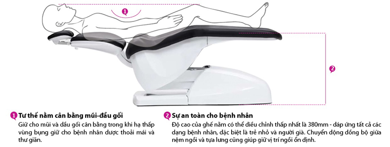 Thiết kế ghế êm ái, cung cấp sự thoải mái tuyệt đối cho bệnh nhân