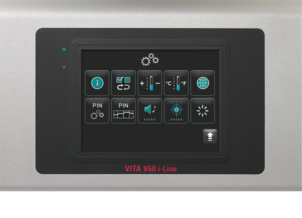 Thiết bị được tích hợp chương trình làm nguội nhanh, kiểm soát bàn nâng hạ và lưu giữ ngắn hạn biến động cung cấp điện. VITA V60 i-Line thích hợp cho tất cả các thương hiệu sứ nha khoa (kể cả sứ lithium disilicate và VITA SUPRINITY). Lò xo điện trở của VITA được làm bằng thạch anh cho kết quả nung hoàn hảo. Vỏ kim loại và khay làm mát tích hợp cực kỳ ổn định, kiên cố rắn chắc.