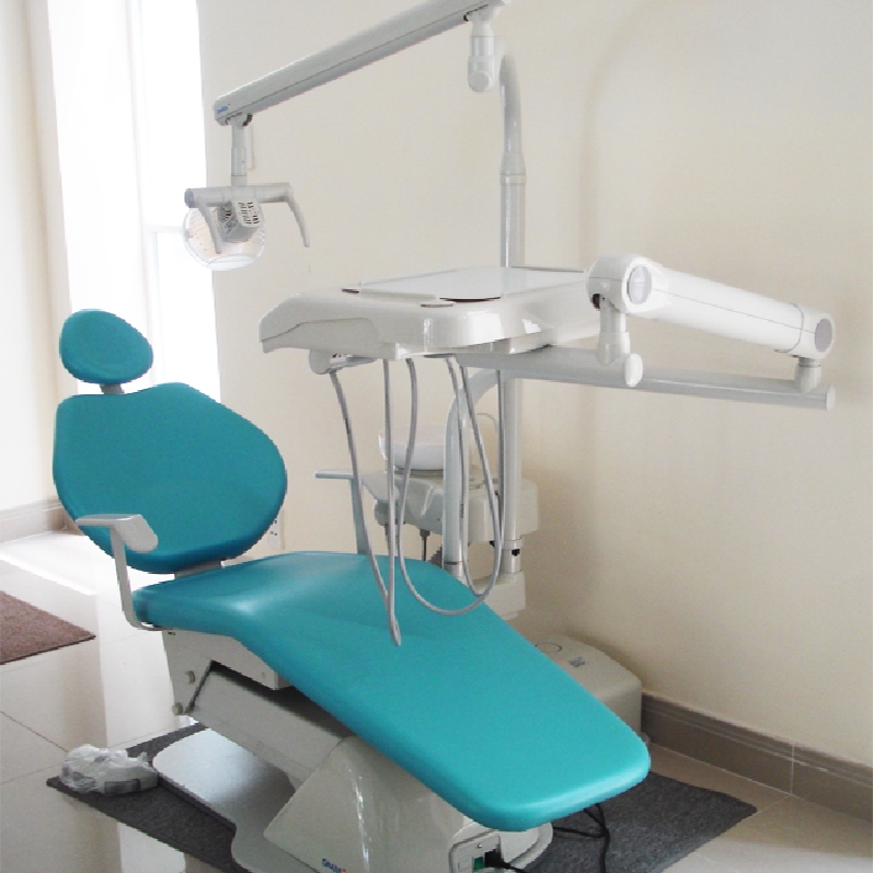 - Ghế nha sĩ thiết kế chắc chắn với 5 bánh xe đẩy, nệm bọc ép chân không, trơn láng, đồng bộ với ghế bệnh nhân