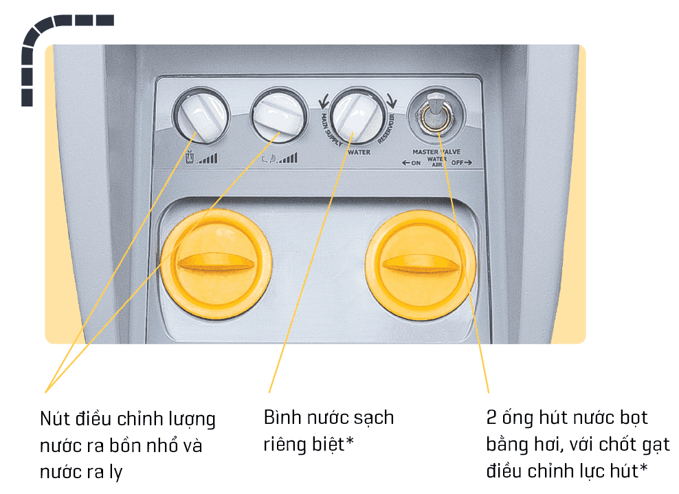 - Kích hoạt nước chảy ra bồn nhổ và nước ra ly